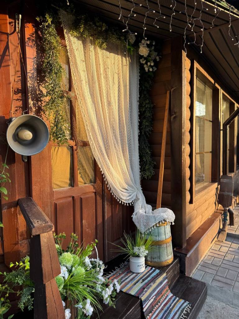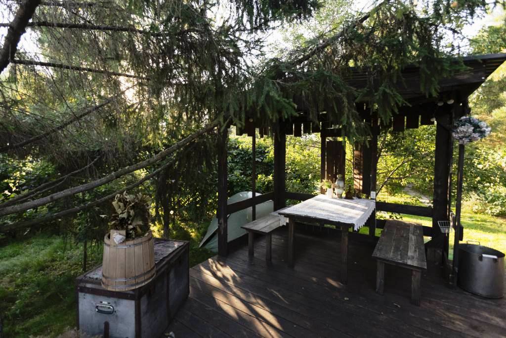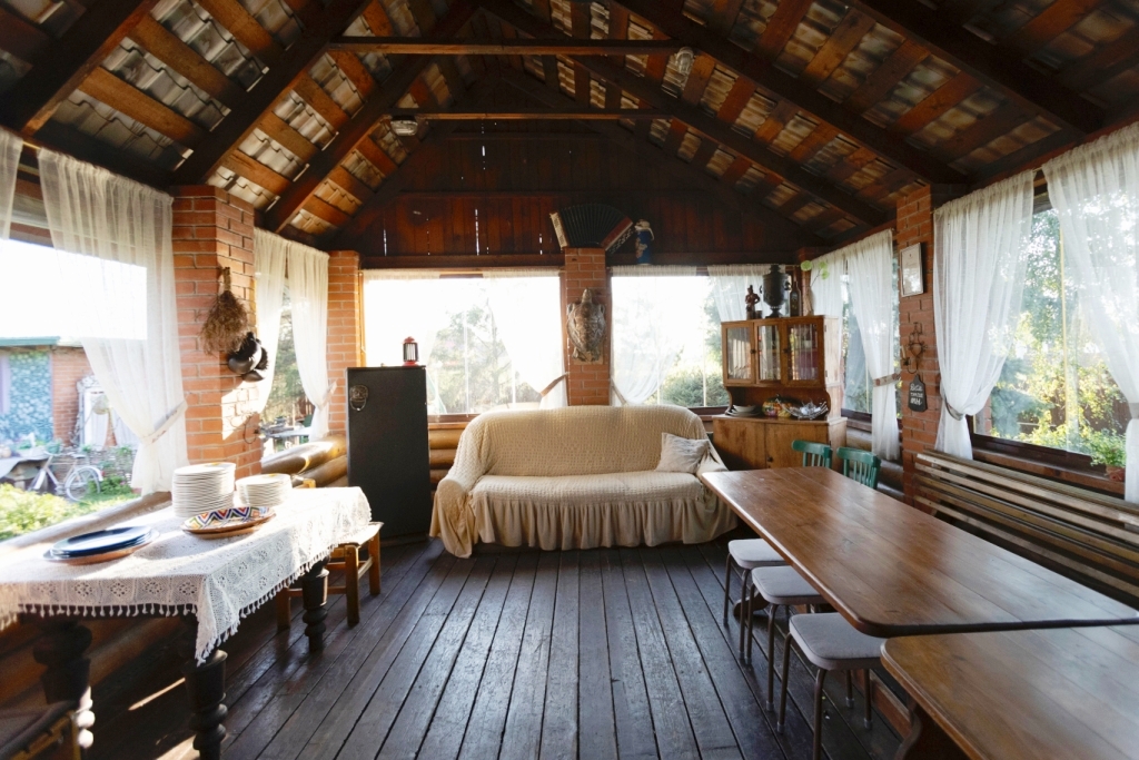 На просторной застекленной веранде могут разместиться до 45 чел. Мангальная зона с казаном, тандыром, пароконвектоматом. Шампура, решетки, дрова предоставляются. С собой нужно взять питьевую воду и уголь. Предоставляются услуги повара.