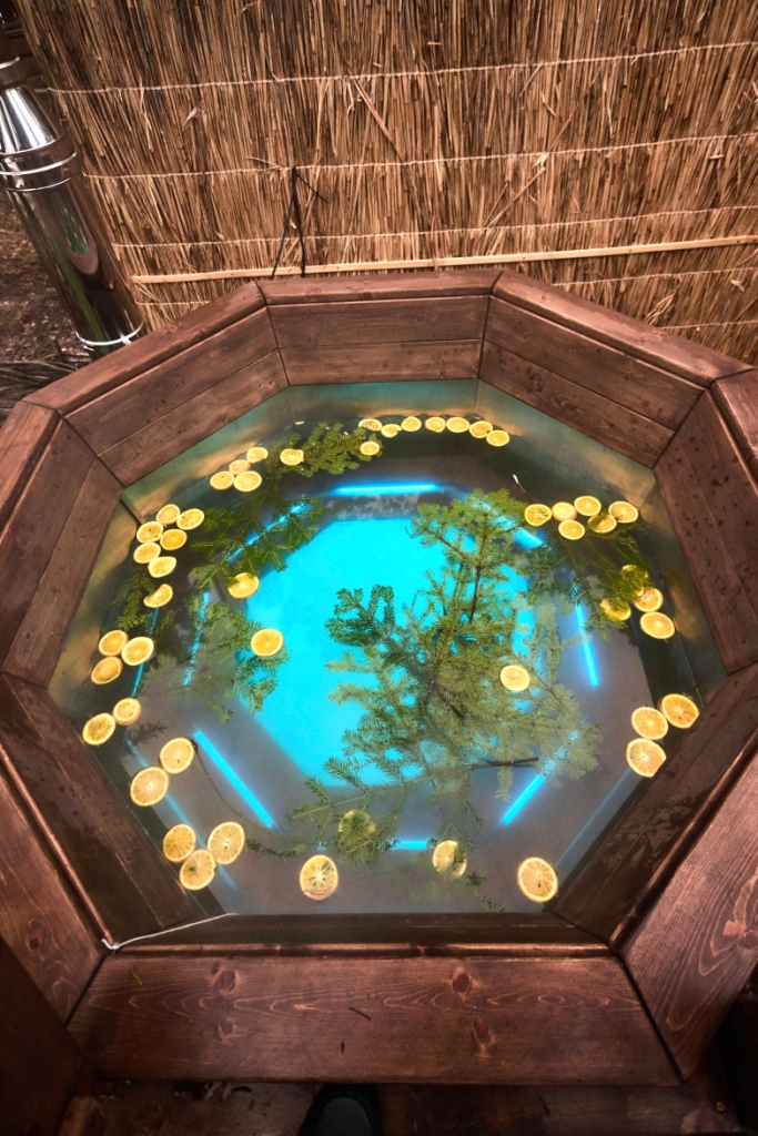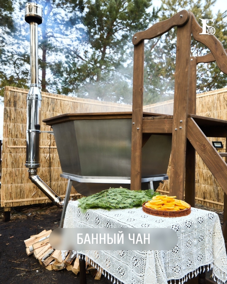 Аренда чана с наполнением (Хвойно-цитрусовый — для бодрости и энергии, с травяными мешочками — для глубокого расслабления или с лепестками роз — для романтического настроения) 7000 руб. за 3 часа.