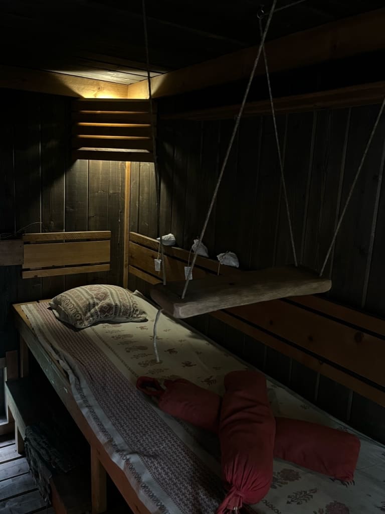На территории можно арендовать сибирскую баню-хамам из кедра «БАНИЧЕВ» состоит из парой, комнаты отдыха со столом и чайной зоной. Посуда и полотенца предоставляются. Рядом баней на улице установлена релакс-качеля, есть зона барбекю, туалет. Стоимость аренды бани Баничев в будни – 8 000 руб., в выходные — 9 000 руб. для 2-х персон, доп. гость 1000 руб. длительность сеанса - 6 часов. При бронировании дома предоставляется скидка 50% на 6-ти часовой сеанс парения в бане «Баничев».