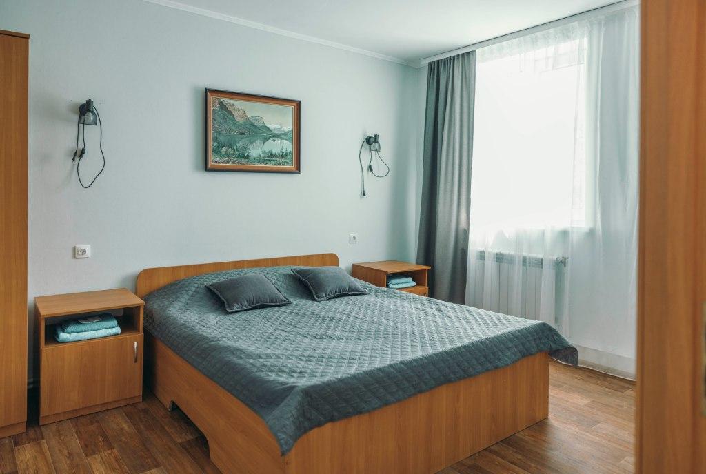 Полулюкс (двуспальная кровать, ТВ, холодильник, чайник, стол, туалет, душ, кондиционер). Максимальная вместительность 2 человека. Стоимость аренды в будни на 2 чел. 3000 руб./сут, выходные - 3500 руб./сут.